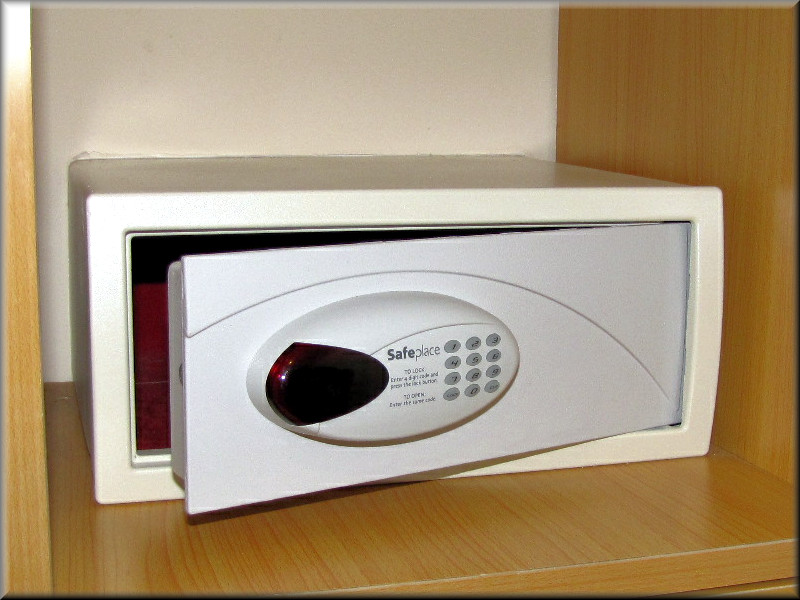 Picture of the in-room safe and its dimensions